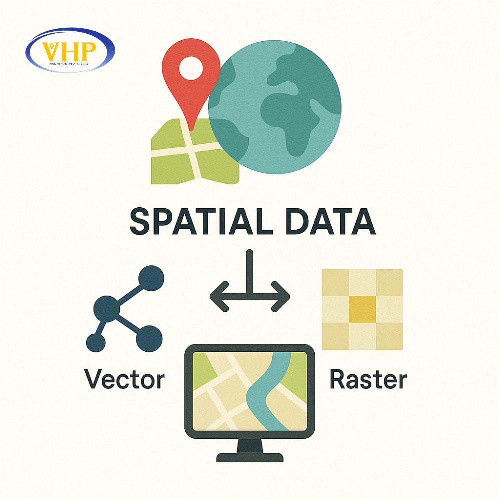 Dữ liệu không gian là nền tảng cốt lõi để xây dựng và vận hành bản đồ số, dùng để mô tả vị trí, hình dạng và mối quan hệ giữa các đối tượng địa lý trong không gian thực.