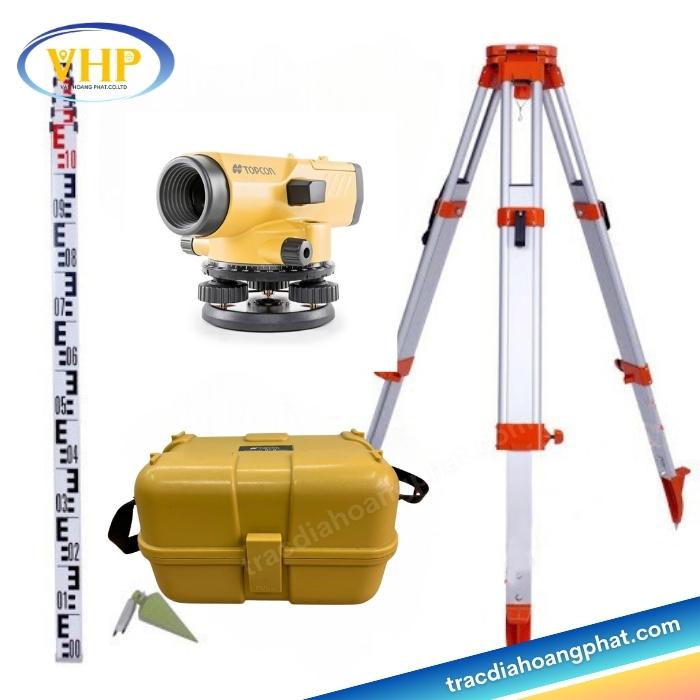 Bộ máy thủy bình Topcon Hãng chính hãng được cung cấp bởi Trắc Địa Hoàng Phát, gồm có: