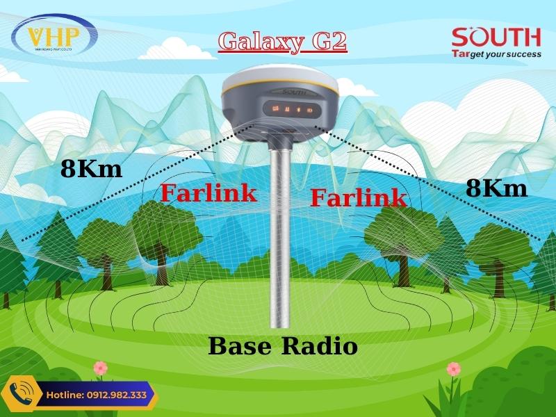 Máy GPS RTK Galaxy G2 sử dụng một module radio kỹ thuật số mới phát triển với giao thức “Farlink”, đạt được khoảng cách làm việc tiêu biểu lên đến 8km. Băng thông truyền dẫn của “Farlink” mở rộng, giải quyết hoàn hảo vấn đề về khối lượng dữ liệu lớn khi truyền tải. Và việc tiêu thụ năng lượng có thể giảm khoảng 60% khi truyền dữ liệu cùng mức so với RTK truyền thống.