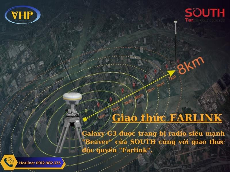 Máy GPS RTK Galaxy G3 được trang bị radio siêu mạnh “Beaver” của SOUTH cùng với giao thức độc quyền “Farlink”. Radio “Beaver” giúp tiết kiệm năng lượng hơn và giao thức “Farlink” có băng thông lớn hơn.