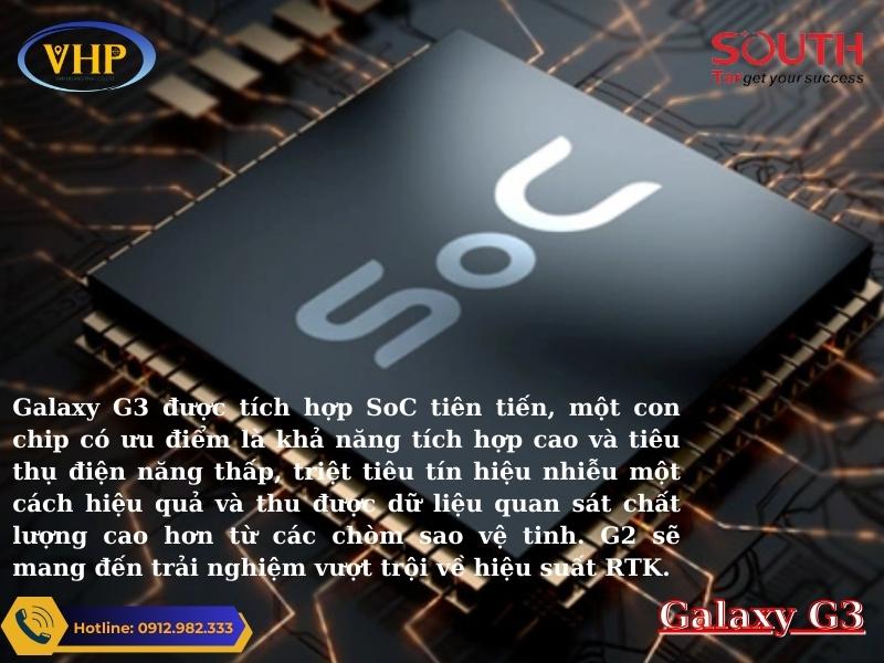 Galaxy G3 được tích hợp SoC tiên tiến, một con chip có ưu điểm là khả năng tích hợp cao và tiêu thụ điện năng thấp, triệt tiêu tín hiệu nhiễu một cách hiệu quả và thu được dữ liệu quan sát chất lượng cao hơn từ các chòm sao vệ tinh. G3 sẽ mang đến trải nghiệm vượt trội về hiệu suất RTK.